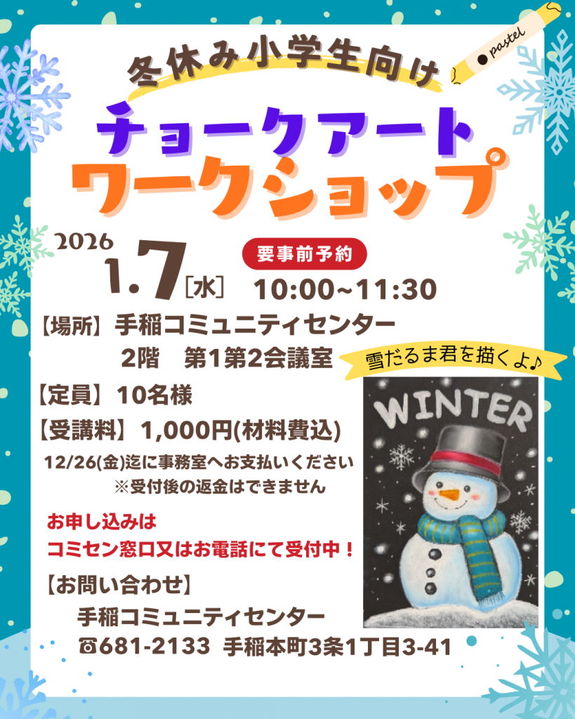 この度冬休み企画として小学生向けのチョークアート講座を開催いたします!
