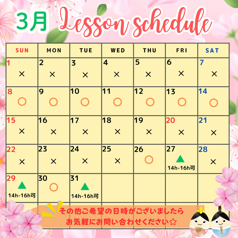 さて、3月のチョークアートレッスンスケジュールをお知らせいたします!